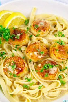 #14 Seared Scallops and Pasta with Creamy Lemon Garlic Sauce